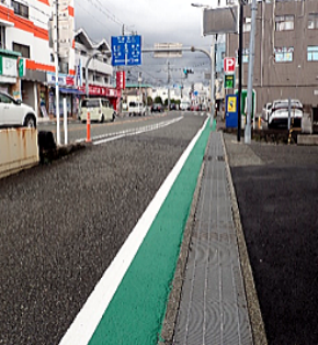国道の側道に、車両と歩行者の通行区間を分かりやすくするためのグリーンベルトを設置してほしい。